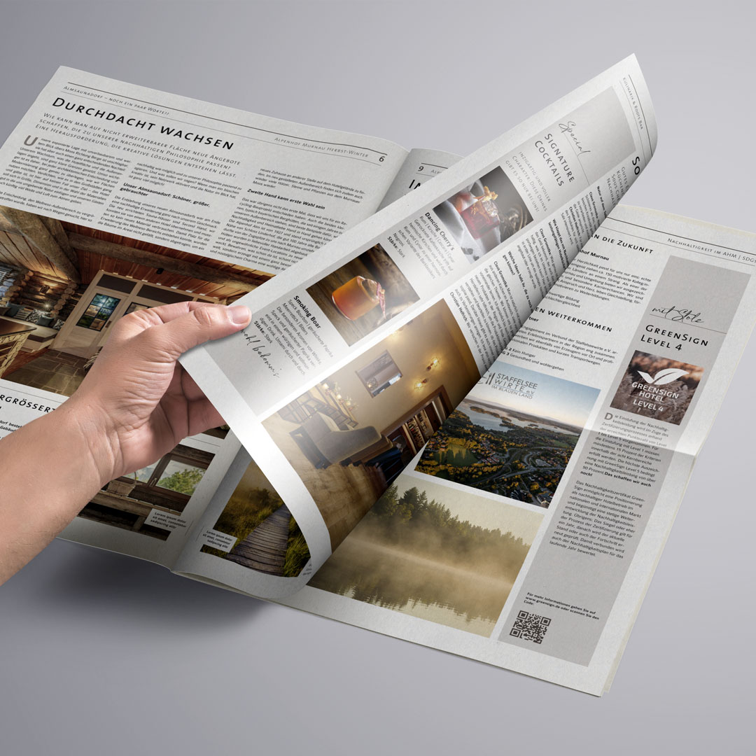 Rund um den Alpenhof ranken sich viele interessante Geschichten, die nicht nur die Natur und Kultur in seiner Umgebung beleuchten, sondern auch Einblicke in die Denkweise des Hotelchefs Christian Bär, die Leidenschaft des Küchenchefs für regionale Zutaten und die engagierten Bemühungen, das Hotel noch nachhaltiger zu gestalten. Deshalb haben wir uns entschlossen, diese Geschichten in einer eigenen Zeitung zu veröffentlichen und sie den Gästen des Alpenhofs zu präsentieren.